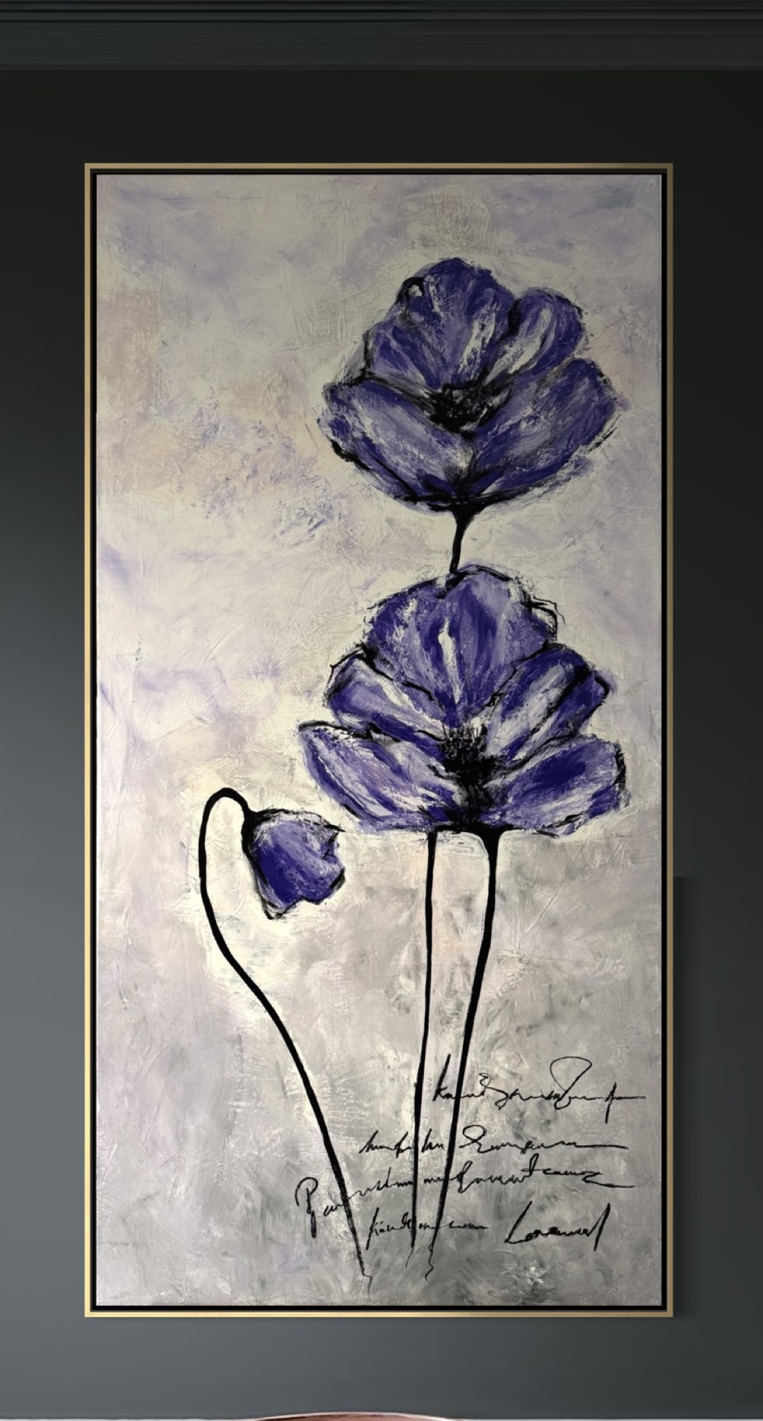 Each petral painted strokes against a calming backdrop. Elegant purple flowers sway gently agaiunst a soft captuing natures serene beauty this trio of purple flowere emerges the elegance in your wall space.